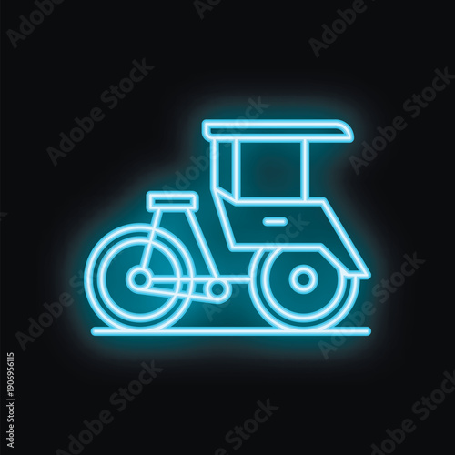 Glowing neon icon of a cycle rickshaw, a sustainable mode of transportation