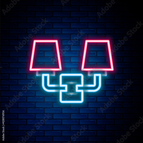 Glowing neon line Wall lamp or sconce icon isolated on brick wall background. Wall lamp light. Colorful outline concept. Vector