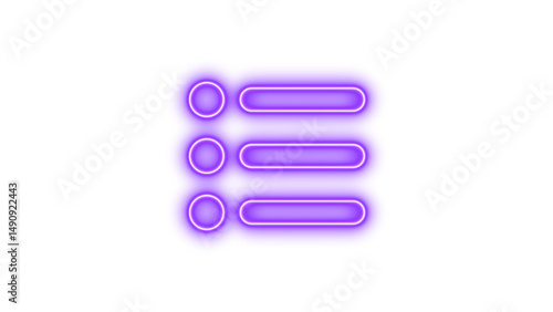 Glowing neon list icon with three horizontal lines and circular bullet points