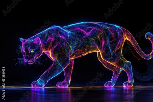 Glowing neon panther walking with colorful energy in surreal fantasy style