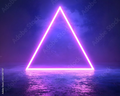 triangle, neon, purple, glowing, futuristic, abstract, background, three-dimensional, digital, geometric, modern, minimalist, technology, energy, light, gradient, blue, vibrant, dynamic, render, graphic, concept, display, product, design, space, copy, high-coloured, aglow, sleek, dimensional