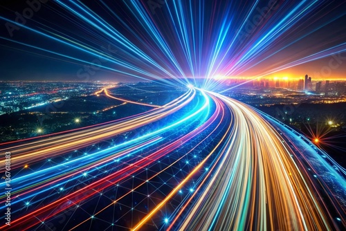 Glowing Network Lines - 5G Wireless Technology Long Exposure Stock Photo