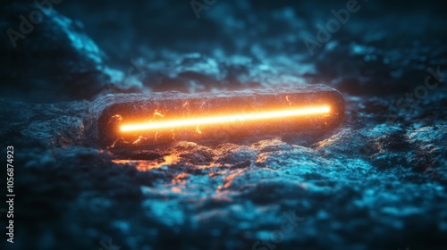 fractured, dark, glowing, line, orange, rough, stone, blue, surface, texture, abstract, light, background, digital, image, design, graphic, illustration, three-dimensional, render, night, glow, bright, depth, energy, electricity, futuristic, mystical, magical, power, cosmic, space, universe, fantasy, art