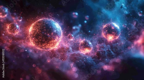 Glowing Orbs in Cosmic Nebula, Abstract Sci-Fi Background.