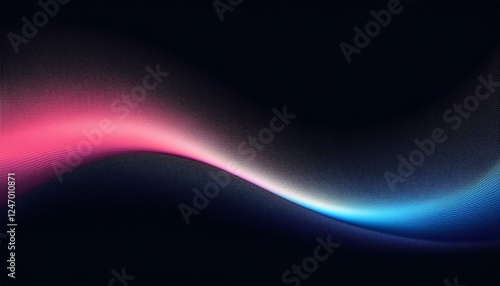 Glowing pink blue white dynamic grainy gradient wave on black banner abstract color flow noise texture dark website header poster design copy space
