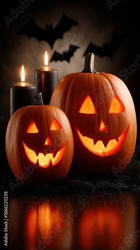 halloween, pumpkin, candle, skittish, festive, autumn, orange, glowing, carved, celebration, holiday, seasonal, night, dark, bat, decoration, light, shadow, mood, still life, closeup, october, fall, eerie, creepy, whimsical, fun, party, treat, decor, event, scarey, fantasy, atmosphere, design, illuminated, folklore, traditional, vintage, rustic, harvest, cheerful, warm, cosy, simple, bright, elegant