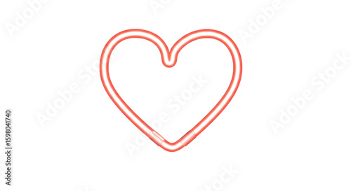 Glowing red heart shape outline, romantic symbol isolated on transparent background