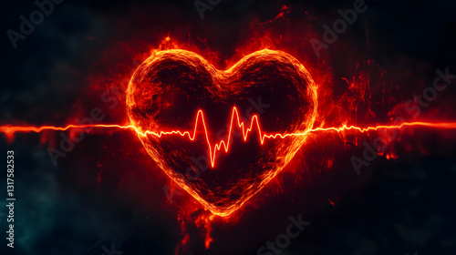 Glowing Red Heart Shape with a Neon Pulse Line