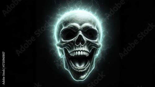 skull, glow, dark, eerie, skittish, horror, death, bone, skeleton, creepy, halloween, ghost, spirit, haunted, mysterious, glowing, light, shadow, black, contrast, fear, grisly, gothic, undead, evil, phantom, spectral, supernatural, menacing, grim, reaper, danger, terror, night, abstract, art, illustration, digital, graphic, design, fantasy, myth, legend, magic, power, energy, aura, bright, vibrant