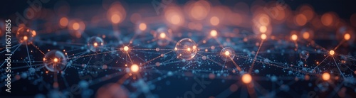 Glowing sphere network with intricate orange connections