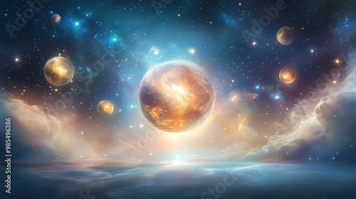 Glowing spheres of vibrant colors orbiting around a central point in space, symbolizing the vastness of creative ideas