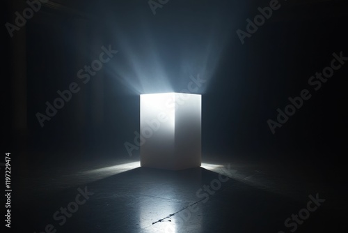 light, cube, glowing, dark, ray, white, beam, box, illumination, mystic, aethereal, contrast, abstract, minimalist, geometric, mystery, spotlight, aglow, monochrome, studio, blank, texture, concrete, shine, emerging, vertical, form, radiant, perspective, stage