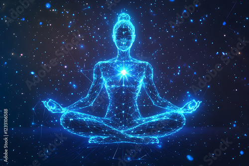 wireframe, glowing, bod, meditation, technology, mindfulness, abstract, digital artwork, concept, futuristic, visualisation, health, wellness, spiritual, energy, harmony, balance, relaxation, serenity, peace, calmness, nirvana, yoga, creativity, innovation