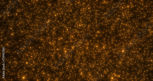 Glowing yellow gold snowflakes snowfall blizzard made of energy abstract particles and light for Christmas and New Year festive abstract background