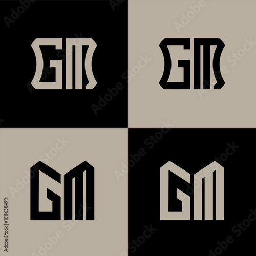 GM polygon, circle, hexagon, flat and simple letter logo set in one artboard. GM minimalist and classic logo.