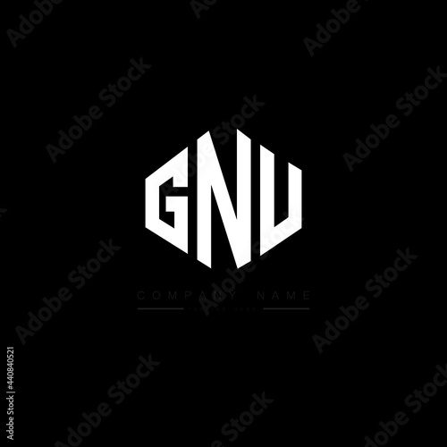 GNU letter logo design with polygon shape. GNU polygon logo monogram. GNU cube logo design. GNU hexagon vector logo template white and black colors. GNU monogram, GNU business and real estate logo.