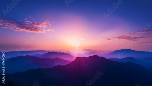 Goal of life, growth and motivation: Bright sunrise over a mountain, symbolizing new beginnings.