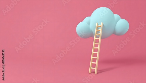 Goal of life, growth and motivation: Ladder reaching into the clouds, aspirations and growth.