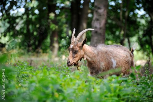 Goat in meadow. Goat herd