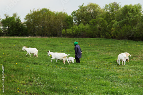 Goats are grazed in a meadow