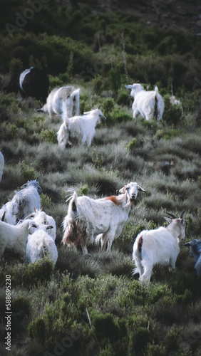 Goats grazing on a hill