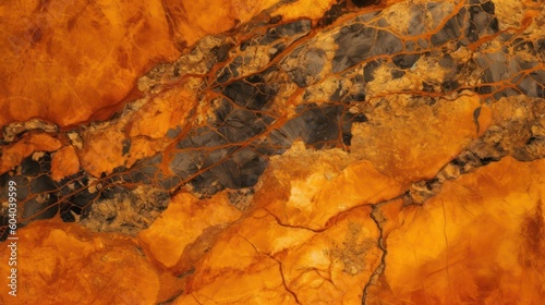 Gold and orange rusted marble granite stone textured background wallpaper. Generative AI