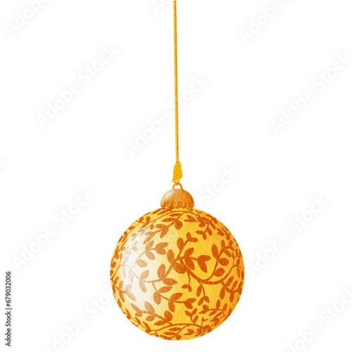 Gold christmas ball watercolor.