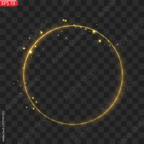 Gold circles frame with glitter light effect. A golden flash flies in a circle in a luminous ring.