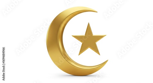 crescent, moon, star, symbol, gold, gold, islam, islamic, religion, religious, ramadan, eid, muslim, faith, spirituality, belief, culture, tradition, holiday, decoration, decorative, design, graphic, icon, illustration, vector, art, shiny, metallic, object, isolated, white, background, rendering, three-dimensional, shape, light, shadow, bright, clean, simple, minimal, elegant, ornate, vintage, classic, modern