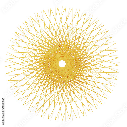 Gold flower shape Spirograph icon. 3d rendering.