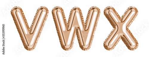Gold foil balloon alphabet set letter V, W, X realistic 3d illustration metallic pink gold air balloon. Collection of balloon isolated ready to use in headlines, greeting, celebration vector eps