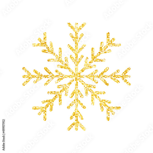 Gold glitter texture snowflake on white background for Christmas tree decoration, Vector, Illustration.