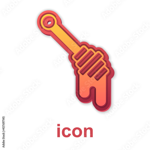 Gold Honey dipper stick icon isolated on white background. Honey ladle. Vector