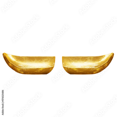 Gold ingot with Chinese-style decoration, in a yellow color, on a transparent background, in PNG format