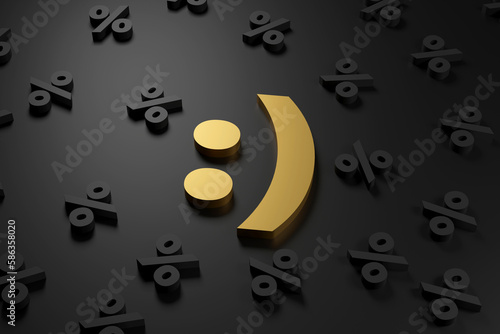 Gold inscription percent on grey podium, soft light, smooth background, 3d rendering