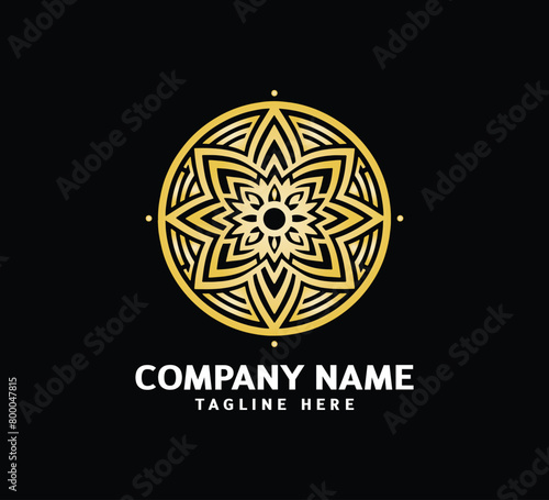 Gold Mandala logo design. Abstract beauty Mandala. Floral ornament. Decorative circle ornament style