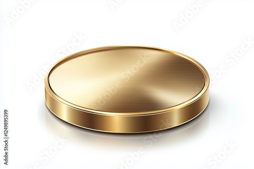 Gold Metallic Disc on White Background