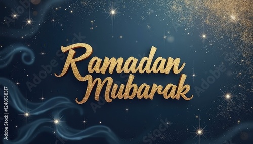 ramadan, gold, glittering, text, starry, blue, gradient, background, festive, celebration, holiday, spiritual, glowing, luxury, elegant, ornate, islamic, islam, religious, holy, sacred, month, banner, greeting, invitation