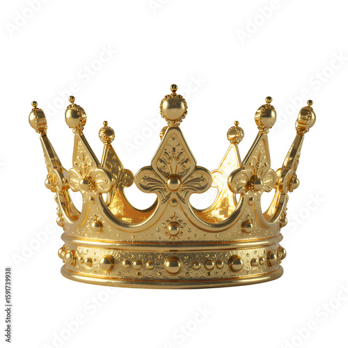 Gold Regal Crown with Floral Details, Transparent Background, 3D Realism Graphic