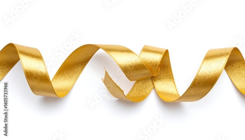 Gold ribbon curls on white background