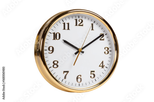 clock, horologe, wall, gold, rim, analog, white, face, number, numeral, hand, minute, hours, second, classic, elegant, vintage, round, circular, isolated, transparent, product, object, public, single, 0, time, punctuality, schedule, office, home, decor, background, display, advertisement, catalog, website