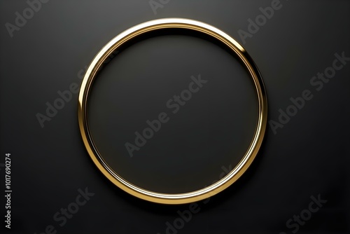 Gold ring frame on a black background. Metal circle border for awards. Luxury round shiny 3d banner. Realistic template for design