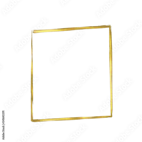 Gold square frame, metallic geometrical shape with copy space, yellow metal texture made with thick layer of paint, overlay design element