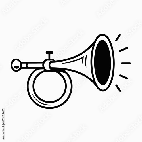 trumpet, isolated, horn, instrument, music, brass, sound, gold, metal, object, white, jazz, three-dimensional, car, bell, vintage, musical, old, antique, illustration, alarm, loud, retro, gold