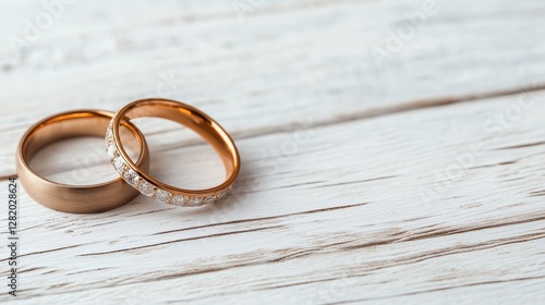 Gold wedding rings on white wooden background romantic jewelry symbol of love and marriage elegant engagement rings close up