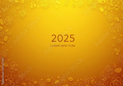 Golden 2025 Lunar New Year: Elegant gold background with 2025 and delicate floral patterns for Lunar New Year celebrations. Perfect for cards, invitations, and festive designs.