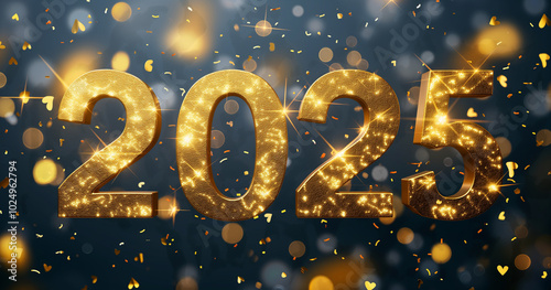 2025, new, year, celebration, gold, letter, sparkling, light, confetti, bokeh, background, blue, three-dimensional, rendering, holiday, party, future, festive, joy, optimism, hope, progress, achievement, success, time, event, digital, art, design, graphic, illustration, abstract, modern, minimal, bright, sparkly, shiny, glistering, luxury, celebratory, happy, new year's eve, new year's day, christmas, new year, winter, greeting