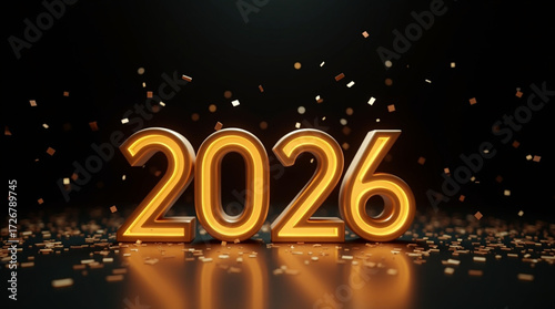 year, number, celebration, new, 2026, gold, light, confetti, festive, future, bright, sparkle, shine, glowing, holiday, event, occasion, anniversary, date, time, symbol, design, element, decoration, illumination, metallic, luxury, elegance, glistering, abstract, art, graphic, render, digital, visual, style, modern, concept, creative, artistic, effect, pattern, texture, surface, copy, space, nobody