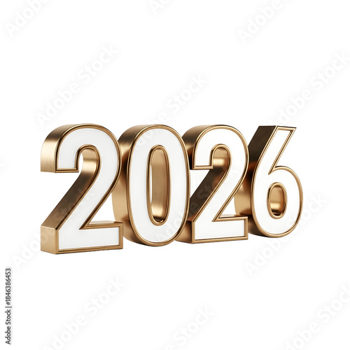 Golden 2026 Number Isolated on White Background 3D Rendering