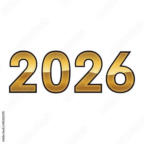 2026, new year, year, number, text, font, typography, digit, gold, gold, metal, shiny, date, calendar, future, celebration, holiday, event, party, isolated, white background, vector, illustration, flat, design, bold, modern, graphic, symbol, icon, signs, annual